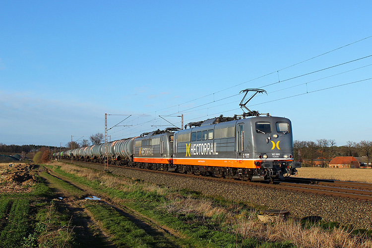 Der Kesselzug Hamburg - Rhäsa kam mit Hectorrail 162.009, die auch noch die 008 am Haken hatte. |