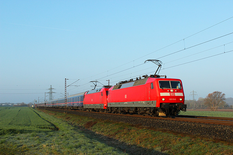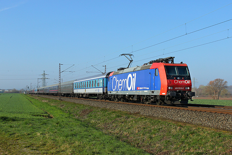 Ausflug #2-2019 am 30.03. an die NSS war nicht ganz so erfolgreich, wie der erste, aber am Samstag fährt nun einmal nicht so viel. Immerhin hatte der Nightjet 490 Wien - Hamburg Verspätung, so das ich dieses Bild machen konnte. Zuglok's waren 120 111 + 101 035, aufgenommen bei Nörten-Hardenberg. |