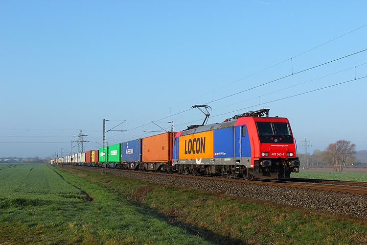 Die für Locon fahrende SBB-Cargo 482 043 fuhr mit einem Containerzug nordwärts. |
