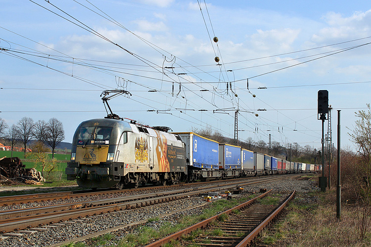 Endlich mal eine saubere Boxxpress - 193 881 mit Containerzug in Richtung Süden. |