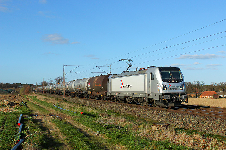 Am 31.03.2019 ging es erneut nach Emmendorf. RHC 187 076 fuhr mit einem Kesselzug südwärts. |