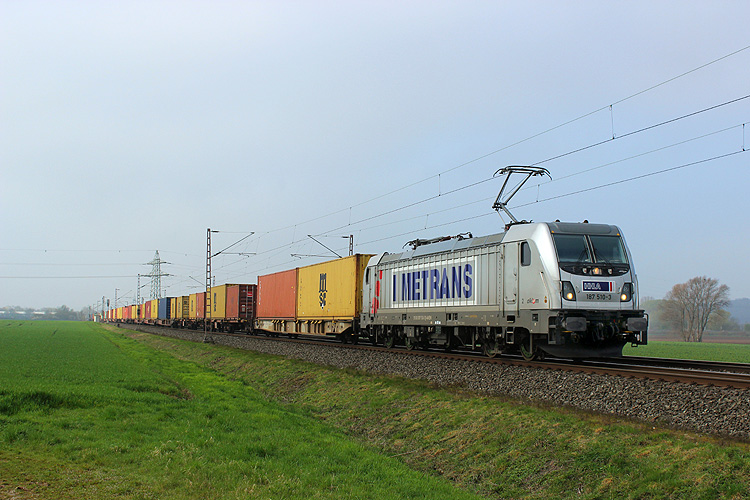 Metrans 187 510 war mit einem Containerzug nach Hamburg unterwegs. |