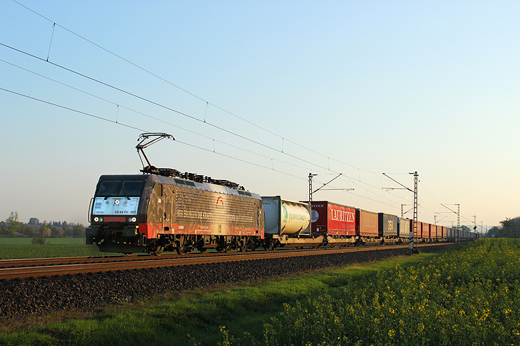 Für den eigentlichen Grund der Tour mußte ich mir wegen des Sonnenstandes eine neue Fotostelle suchen und wurde im Bahnhof Einbeck-Salzderhelden fündig. Zum allerletzten Mal war der "Kaiser Franz Joseph" 182 523 für die TXL auf Tour, er brachte den KLV DGS 43140 aus Verona nach Lübeck. |
