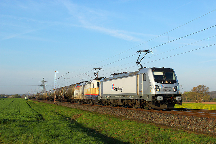 RHC 187 079 + 185 589 waren mit einem Kesselzug nach Hamburg unterwegs. |