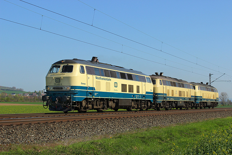 Loktausch beim Sylt-Shuttle - "Conny" 218 460 fuhr mit RPRS 218 480+490 heimwärts in Richtung Kassel. |