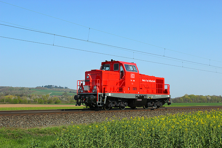 Eine Zuglok vom Tunnelrettungszug, 714 109 fuhr solo nordwärts. |