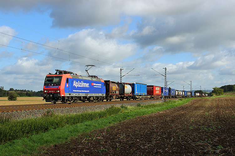 Auch 482 022 von SBB-Cargo fuhr mit ihrem Containerzug in Richtung Süden. |