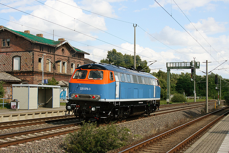 Im Bahnhof Brunau-Packebusch konnte ich am 30.07.2012 ein Bild von 225 079 der NBE machen, die nach der Aufarbeitung im Alstom-Werk Stendal gerade ihre Probefahrt absolvierte. |