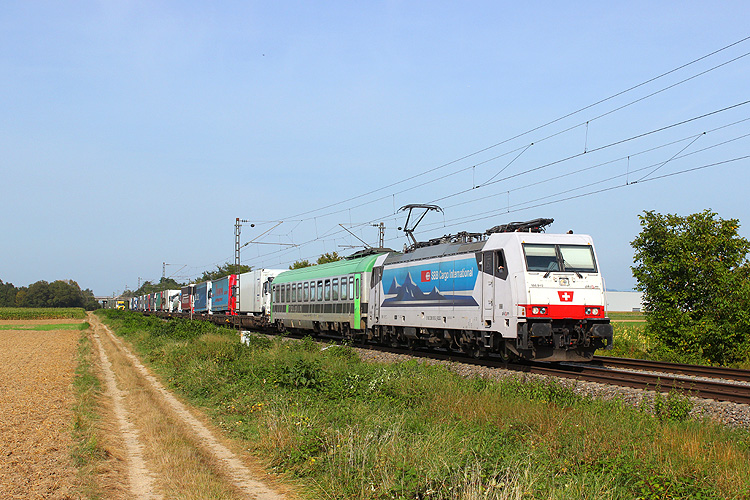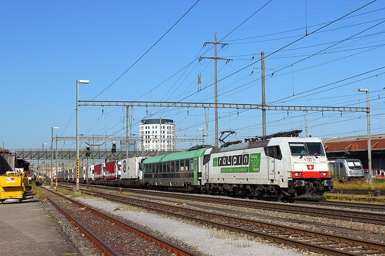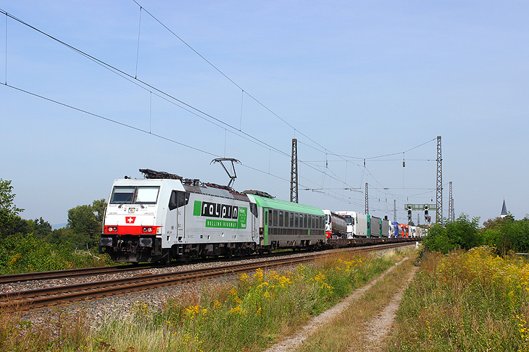 SBB Cargo 186 901 hatte einen Cargo Beamer, auch "rollende Landstraße" genannt, von Freiburg nach Novara am Haken. |