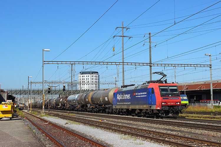 SBB Cargo 482 018 fuhr mit einem Kesselzug in Richtung Liestal. |