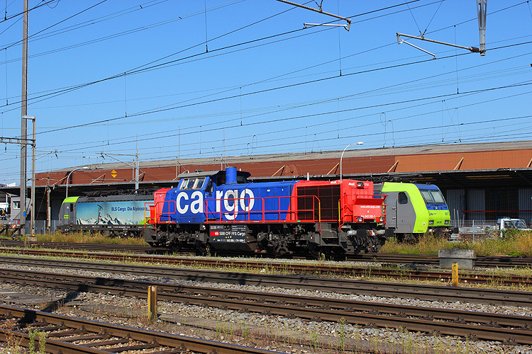 SBB Cargo 484 013 folgte mit einem Mischer in Richtung Lenzburg. |