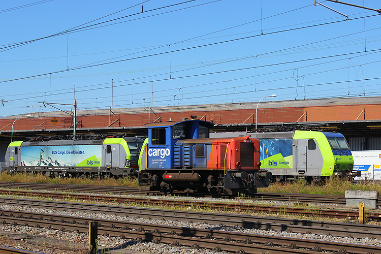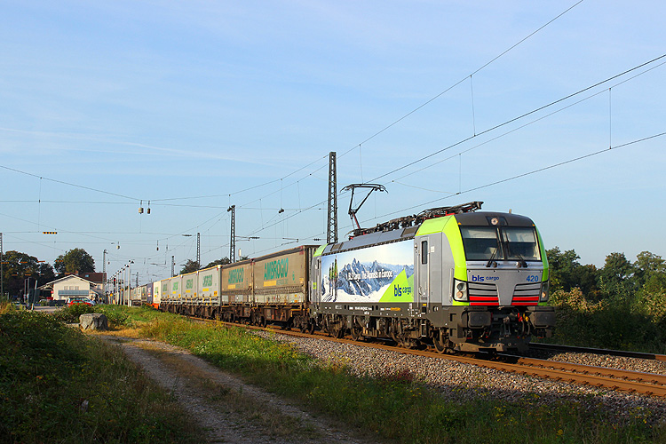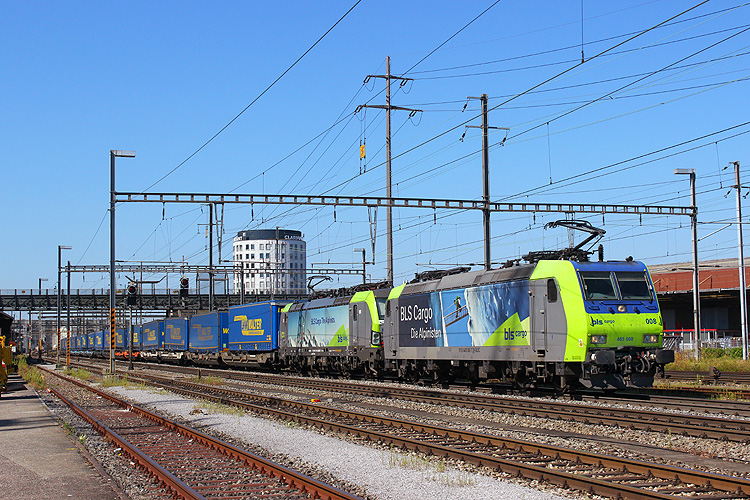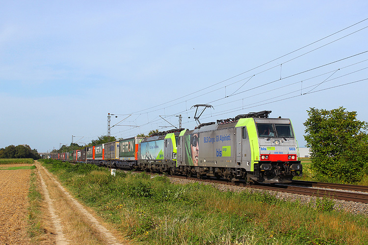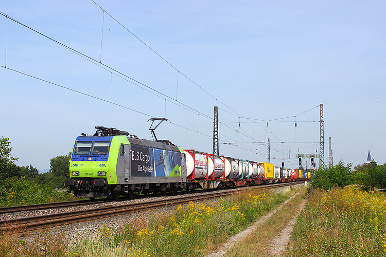 Dann kam BLS 485 020 mit einem Containerzug. |