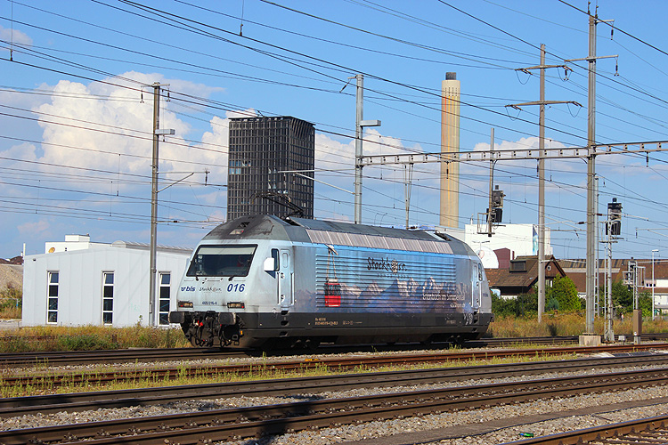 BLS 465 016 "Stockhorn" kam solo aus Richtung Rheinfelden zurück. |