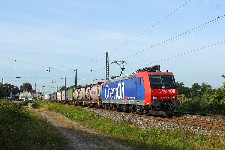 Mit einem Containerzug war SBB Cargo 482 012 in Richtung Freiburg unterwegs. |