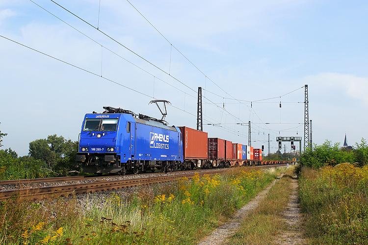 Rhenus 186 269 fuhr mit einem Containerzug in Richtung Basel. |