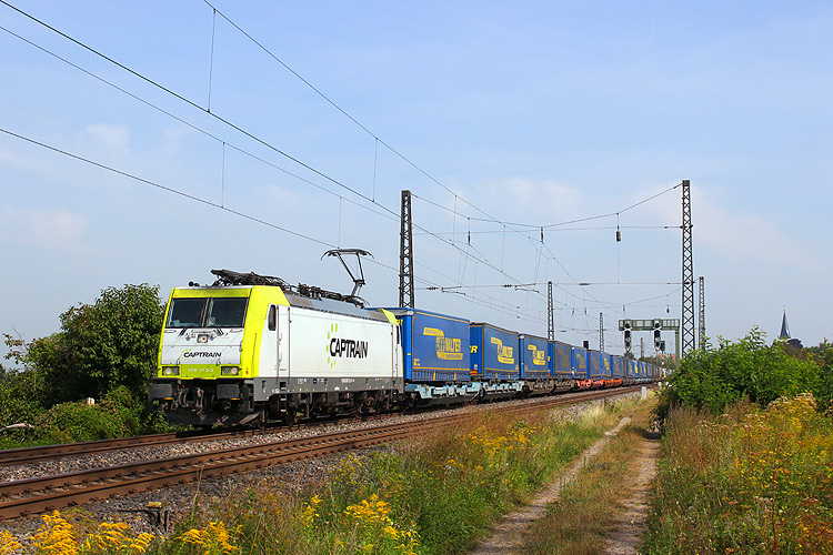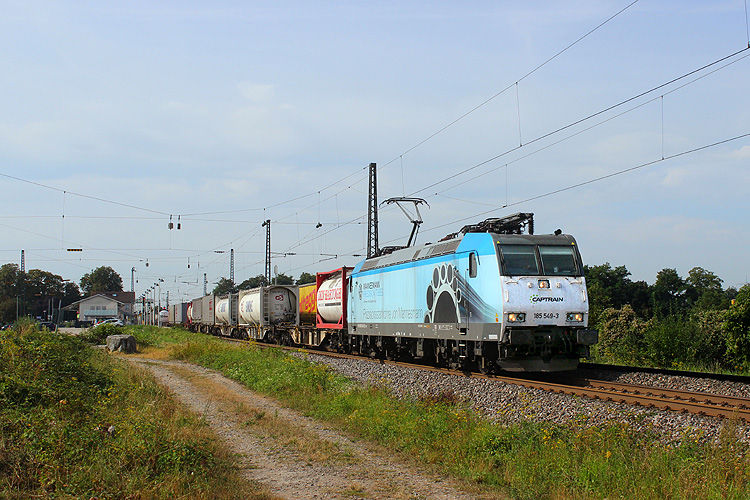 Captrain 185 549 hatte einen Containerzug in Richtung Freiburg am Haken. |