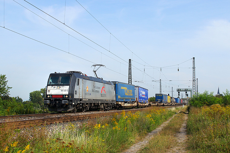 TXL 185 408 fuhr mit einem KLV in Richtung Basel. |