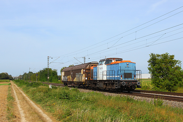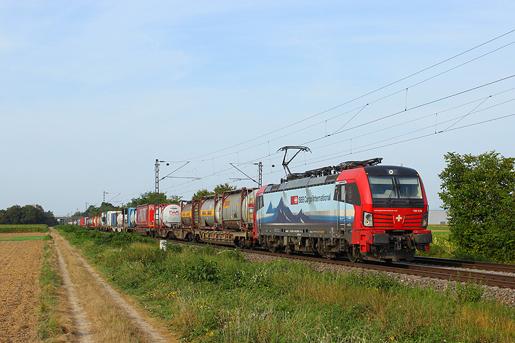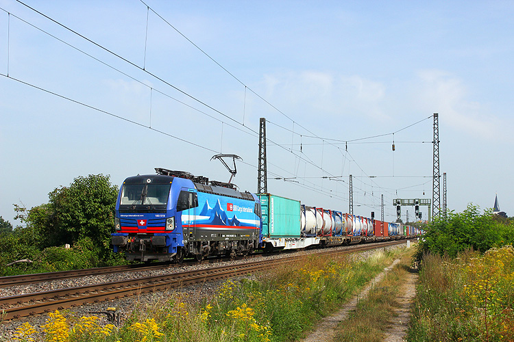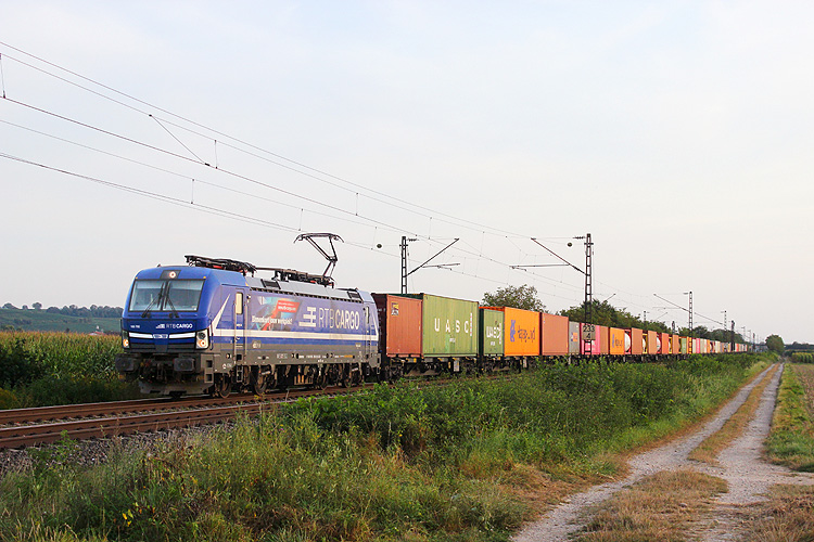 RTB 193 792 war hingegen mit ihrem Containerzug nordwärts in Richtung Freiburg unterwegs. |