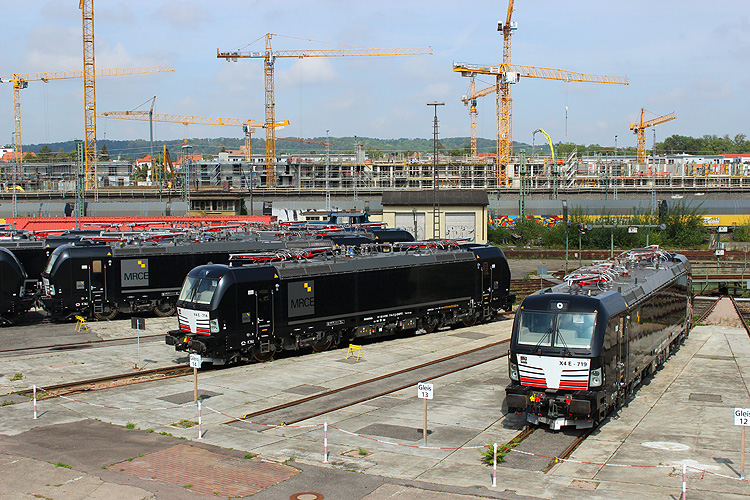 Im Urlaub des Jahres 2019 nutzte ich die Gelegenheit, anstehende Familienbesuche mit dem Hobby zu verbinden. So ging es am 10.09.2019 zunächst nach Regensburg. Im Siemens Auslieferungsstützpunkt warteten etliche MRCE 193 auf ihre Übernahme. |