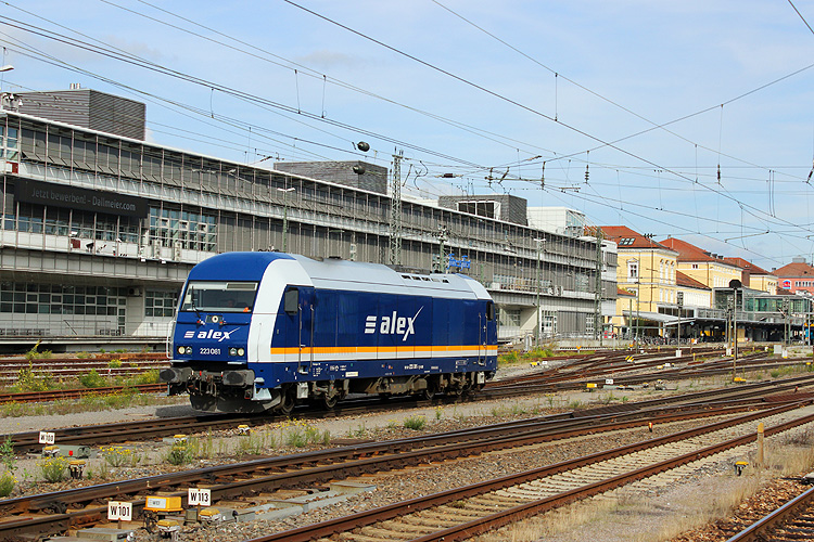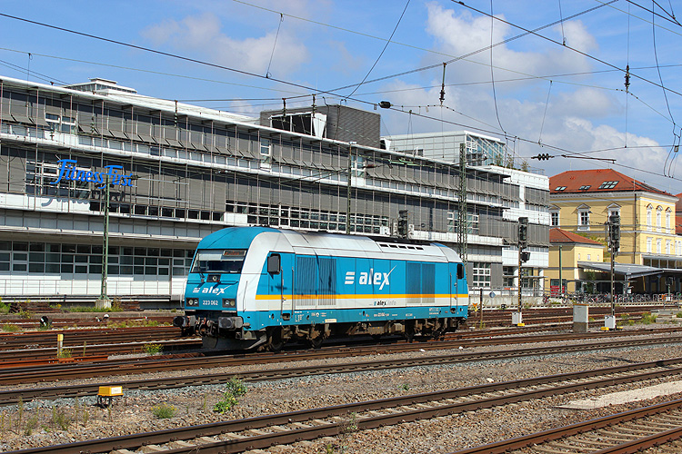 Dann ging es auf dem Hauptbahnhof weiter. Mich interessierten vor allem die Alex-Lokomotiven, die ich noch nie zuvor vor der Linse hatte, wie hier 223 062. |