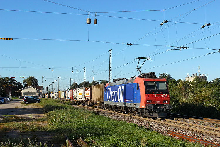 Am nächsten Tag ging es weiter nach Basel. So war endlich einmal die Rheintalbahn in greifbarer Nähe. Am 12.09.2019 fuhr ich gleich morgens nach Heitersheim, die Bildauswahl des Tages eröffnet 482 011 "Chem Oil" von SBB-Cargo mit einem KLV in Richtung Freiburg. |