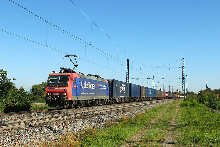 Mit einem Containerzug fuhr SBB-Cargo 482 022 "Alpäzähmer" in Richtung Basel. |