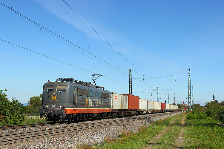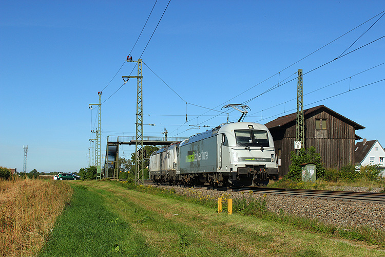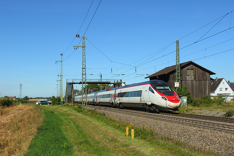 Dieses Mal wechselte ich mit der Sonne nur ein kleines Stück weiter südlich zum Haltepunkt Auggen. Ein ETR 610 - Triebzug von SBB-Cargo fuhr als ECE 52 Mailand - Frankfurt/Main in Richtung Freiburg. |