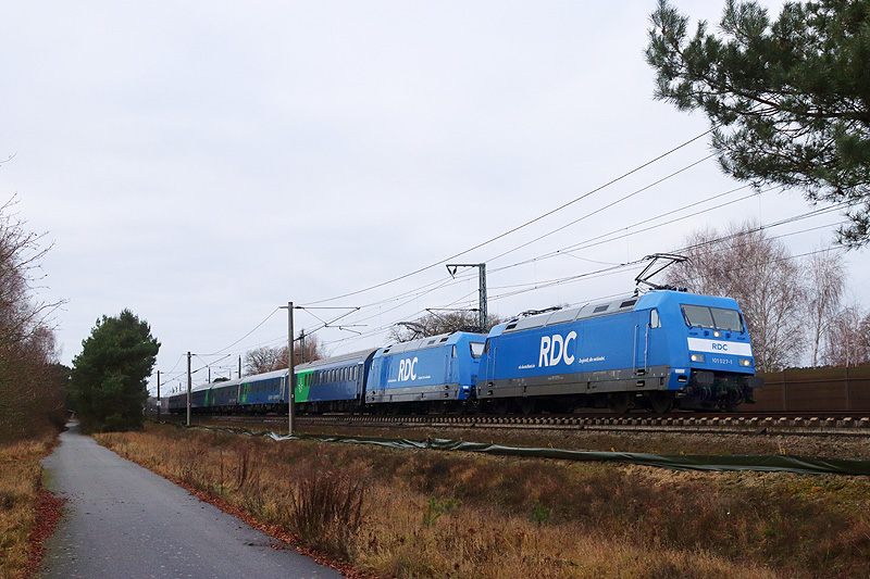 RDC 101 027+071 waren mit dem Leerzug zum Stockholm-EN von Hamburg nach Berlin unterwegs.