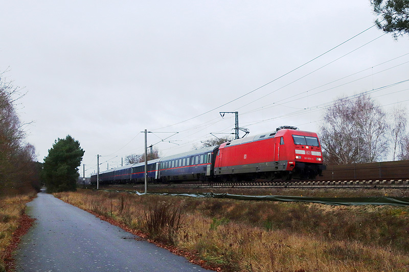 Zum vermutlich letzten Mal kam der leere Nightjet LNF 426 Hannover Hainholz - Berlin Rummelsburg, bespannt mit 101 009.