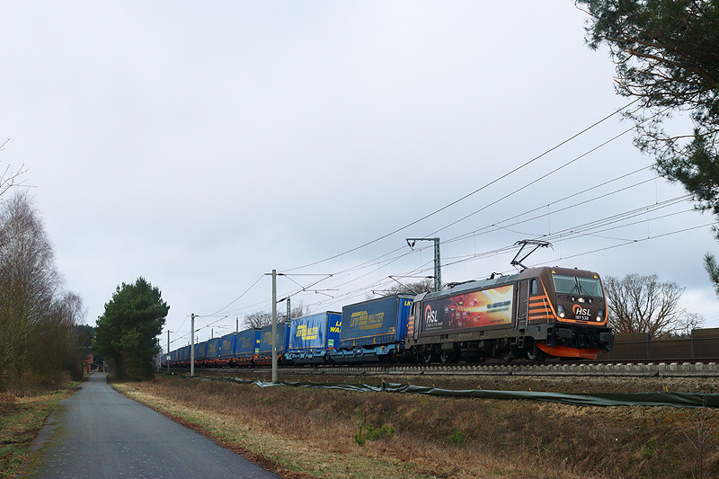 Sonntagvormittag (15.03.) bei Jävenitz - HSL 187 538 mit Lkw-Walter-KLV in Richtung Stendal.