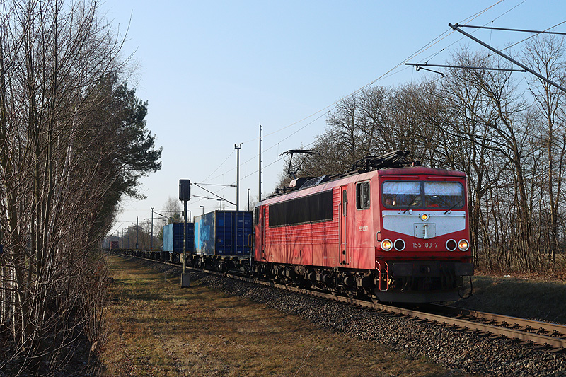 ITX 155 183 kam mit dem Containerzug Hamburg - Halle/Saale.