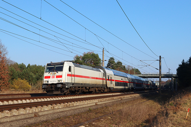 Donnerstagnachmittag (19.03.) bei Jävenitz - 146 577 mit dem IC 2036 Leipzig - Norddeich Mole.