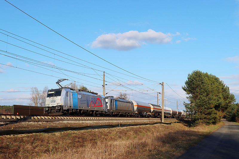 Freitagnachmittag (20.03.) bei Jävenitz - RBP 186 433 mit 187 316 und Gaskesselzug in Richtung Wolfsburg.