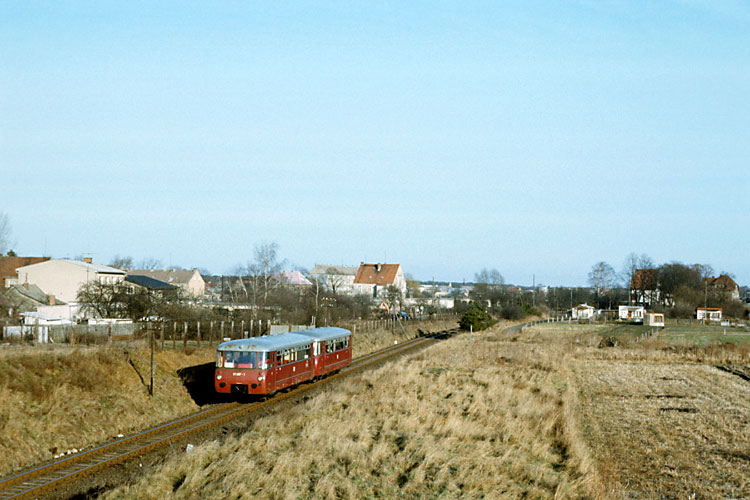 Das gleiche Gespann im gleichen Umlauf bei der Einfahrt in Arendsee, 03.02.1985. |