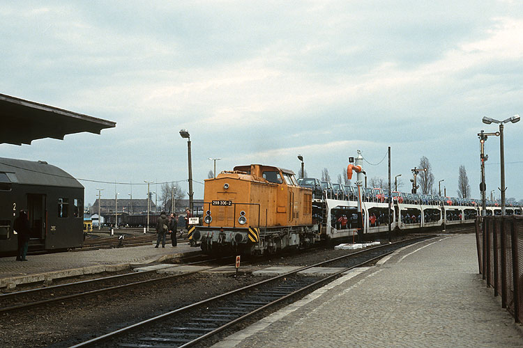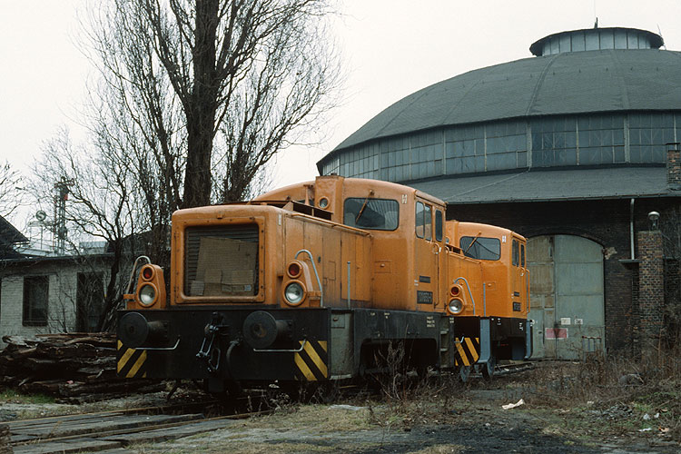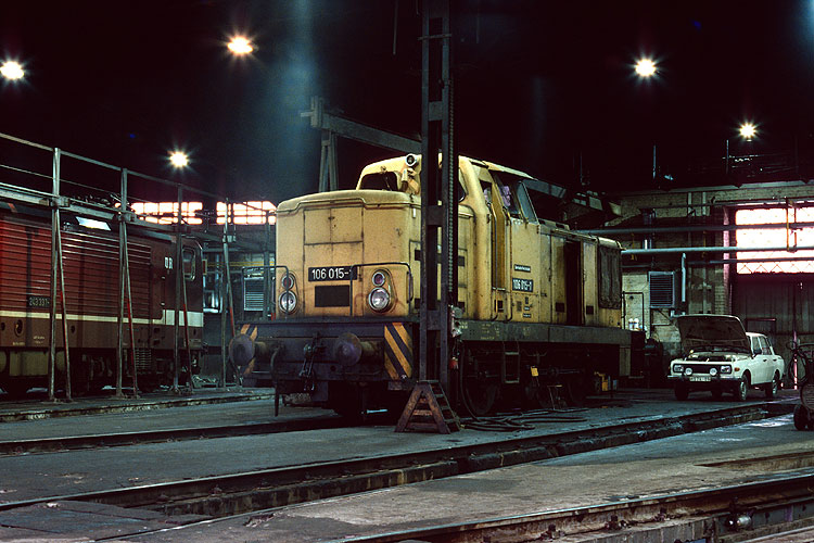 Im Lichtenberger Lokschuppen wurden gerade 106 015 und ein "Wartburg" repariert, links ist auch noch 243 337 zu sehen, 26.01.1991. |