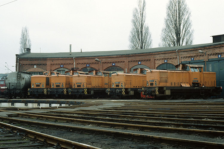 Diese tolle Rangierlokparade gab es ebenfalls vor dem Ringlokschuppen zu sehen, von links nach rechts 106 063, 582 (mit Stromabnehmer zur Justierung der Fahrleitung bei der Streckenelektrifizierung), 640, 987 und 890. |