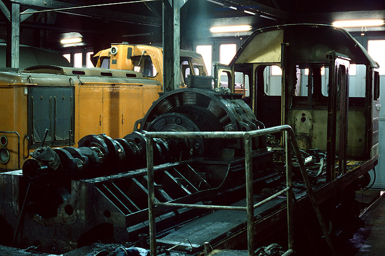 Im Ringlokschuppen war man aber auch schon damit beschäftigt, überzählige 120 zu zerlegen. So kann man aber auch einmal einen Blick auf die Reste des Dieselmotors und des Generators werfen. |