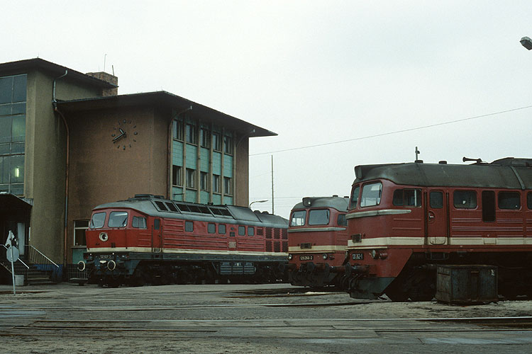 Neben den Ludmillas (132) waren aber auch die Taigatrommeln (120) noch im Einsatz, 132 631, 120 266 und 120 262 standen neben dem Verwaltungsgebäude. |