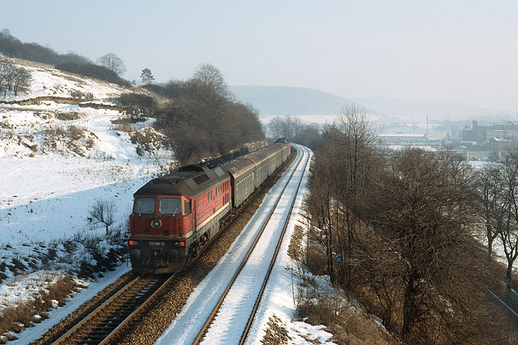 Die Baureihe 131 kam in meiner altmärkischen Heimat nie zum Einsatz. So entstand mein einziges Bild einer 131 bei einem Plandampf in Thüringen, als am mit einer 132 bespannten P 7047 Stadtlengsfeld - Eisfeld die 131 065 als Schlußlok dranhing, Untermaßfeld am 22.02.1991. |