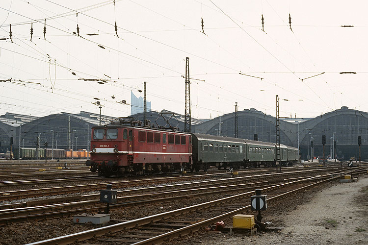109 052 vom Bw Magdeburg verläßt mit dem P 7024 Leipzig - Schönebeck den Leipziger Hauptbahnhof, 06.05.1992. |