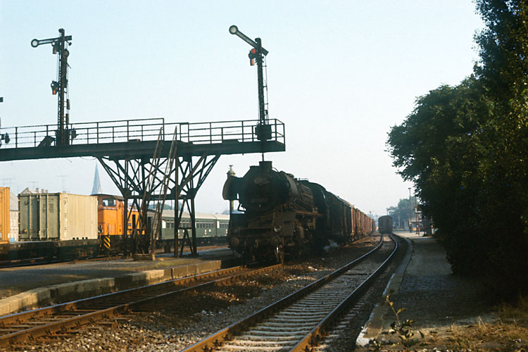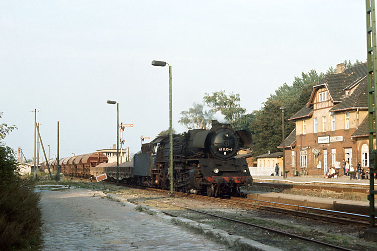 Im Bahnhof Eggersdorf mußte der Dg 54751 eine Kreuzung abwarten, 04.10.1987. |