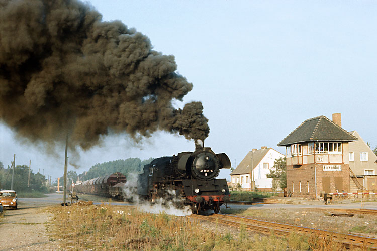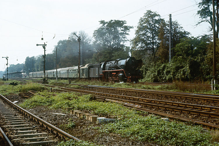 Der Gegenzug ist durch und 41 1150 kann in Eickendorf eine beeindruckende Anfahrt hinlegen, 04.10.1987. |