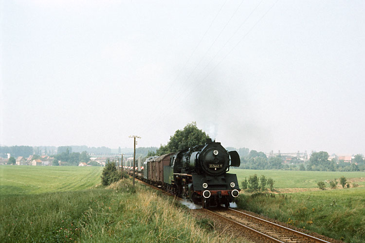 Hinter Badersleben ist am 21.08.1987 50 3662 mit dem N 64784 in Richtung Nienhagen unterwegs. |