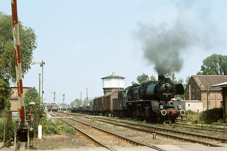 50 3552 dampft als Lzv 64784 an der Blockstelle Wehrstedt vorbei in Richtung Halberstadt, 20.08.1987. Nachdem wir uns nun im Einsatzgebiet der Halberstädter 50 umgesehen haben, geht es auf den folgenden Seiten um die Einsätze der Einsatzstelle Oschersleben. |