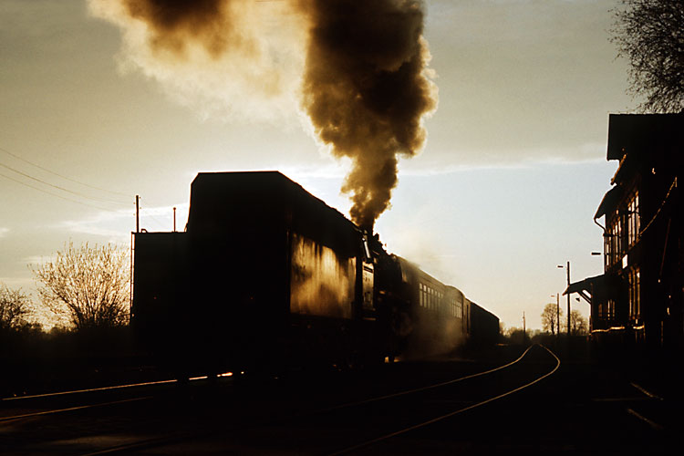 Der Zug am 09.04.1988 in Gunsleben nochmals von der anderen Seite aufgenommen. Der Heizer hat inzwischen ein paar Schippen Kohle in die Feuerbüchse der 50 3606 befördert, gleich wird die Rückfahrt nach Oschersleben beginnen. Wir verabschieden uns damit von dieser kurzen Strecke und wenden uns als letztes der Hauptbahn Magdeburg - Oschersleben zu. |