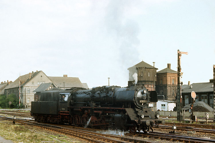 Am 31.07.1988 bespannte 50 3662 den Gmp 68728, hier wieder die Ausfahrt Oschersleben. |