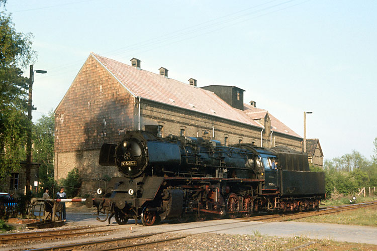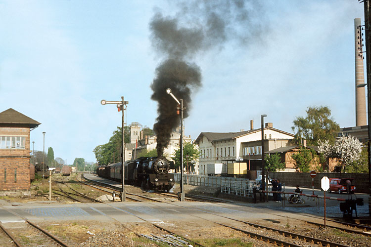 Los gehts - der Gmp verläßt gezogen von 50 3606 Oschersleben, 07.05.1988. |