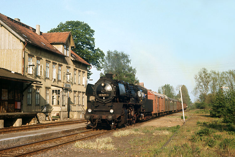 Nach wenigen Kilometern hat 50 3606 mit dem Gmp 68728 schon die Endstation Gunsleben erreicht, 07.08.1988. |