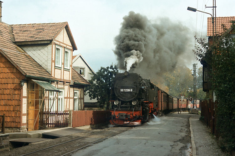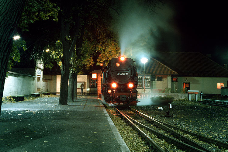 Feierabend für 99 7239, sie ist mit dem P 14408 aus Nordhausen nach Wernigerode zurückgekehrt und wird sogleich ins Bw einrücken, 14.10.1989. |