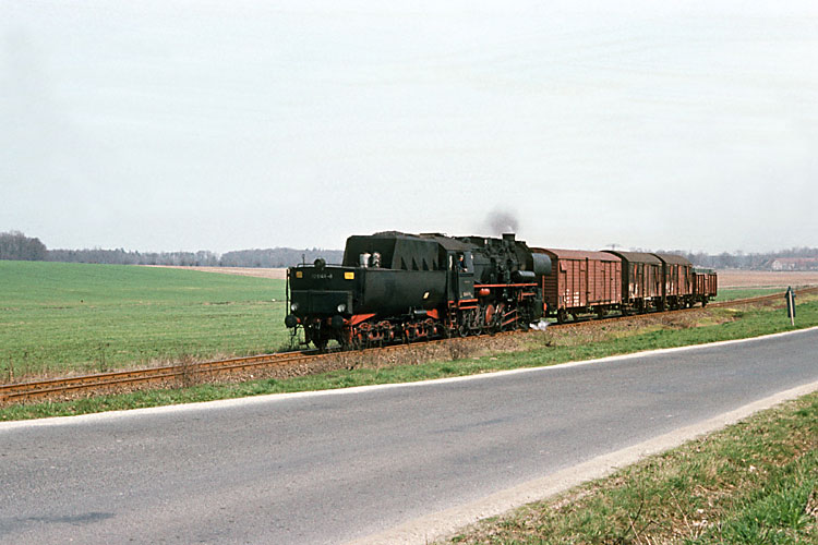 Nun wechselte ich an die Hauptbahn Görlitz - Dresden, wo ich bei Dolgowitz die Görlitzer 52 8125 mit dem Dg 54206 Schlauroth - Löbau fotografieren konnte. |